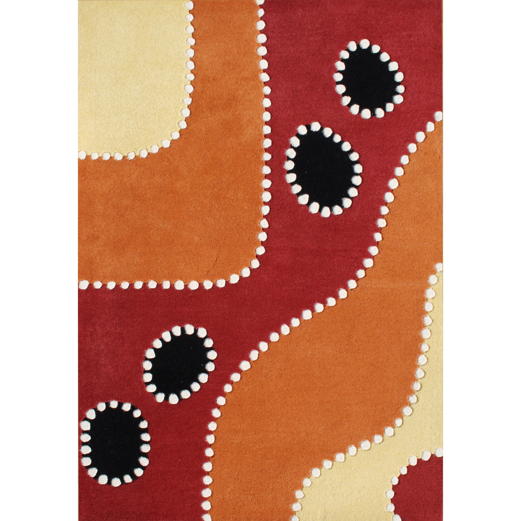 This Alliyah Handmade Tufted Flame Orange New Zealand Bled Wool Rug is hand washed, hand carved and hand shaved. The 5-foot by 8-foot contemporary rug features flame orange with tomato, double cream, ivory and black secondary colors.