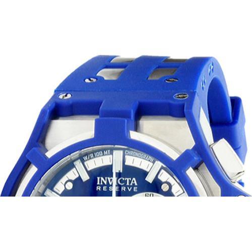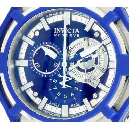 Tough and distinguished, this Invicta Akula Reserve watch exemplifies style. It features a plastic resin strap and a stainless steel buckle for a secure fit. This elegant watch is features a crystal flame fusion display window for protection. The sunray dial has gunmetal and white hands, silver-tone hour markers and a white second hand. There's a luminous stainless steel bezel with a polyurethane cover. This watch even has a chronograph function that measures up to thirty minutes of activity in 1/10sec increments and a convenient date display at the third hour. This watch uses precision automatic movement. It's even water resistant at up to 100 meters.