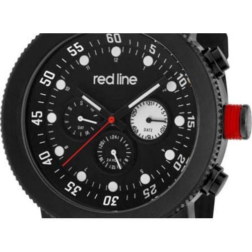 An aura of brilliance. This Red Line timepiece glows with its irradiant charm. Its smooth design will intensify anyone's personality. This men's casual watch features an ion-plated stainless steel case, luminous hands, luminous indices, a buckle clasp, Swiss quartz movement, and a screw-down case back. Water Resistant to 10 ATM/100 meters/330 feet.