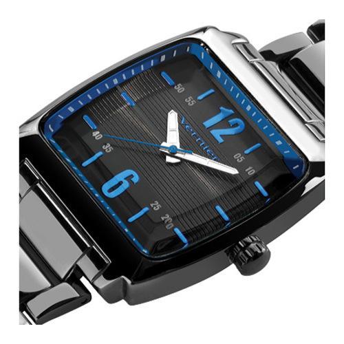 Altogether classy, this women's large timepiece is a must-have for any collection. Timepiece features bold black dial with a sharp color index. This watch features a sprayed alloy bezel all over for a luxurious look. Gun-Metal wristwatch bracelet is an excellent addition to any woman's designer accessory collection.