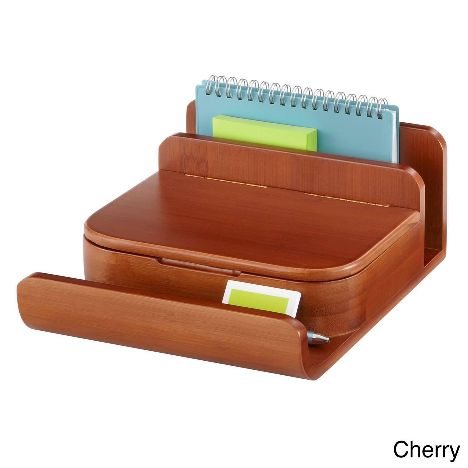 Challenge clutter with the small organizer made of genuine bamboo. This set of four sleek organizers provide storage for pens, pencils, paper and binder clips and other small desk necessities.